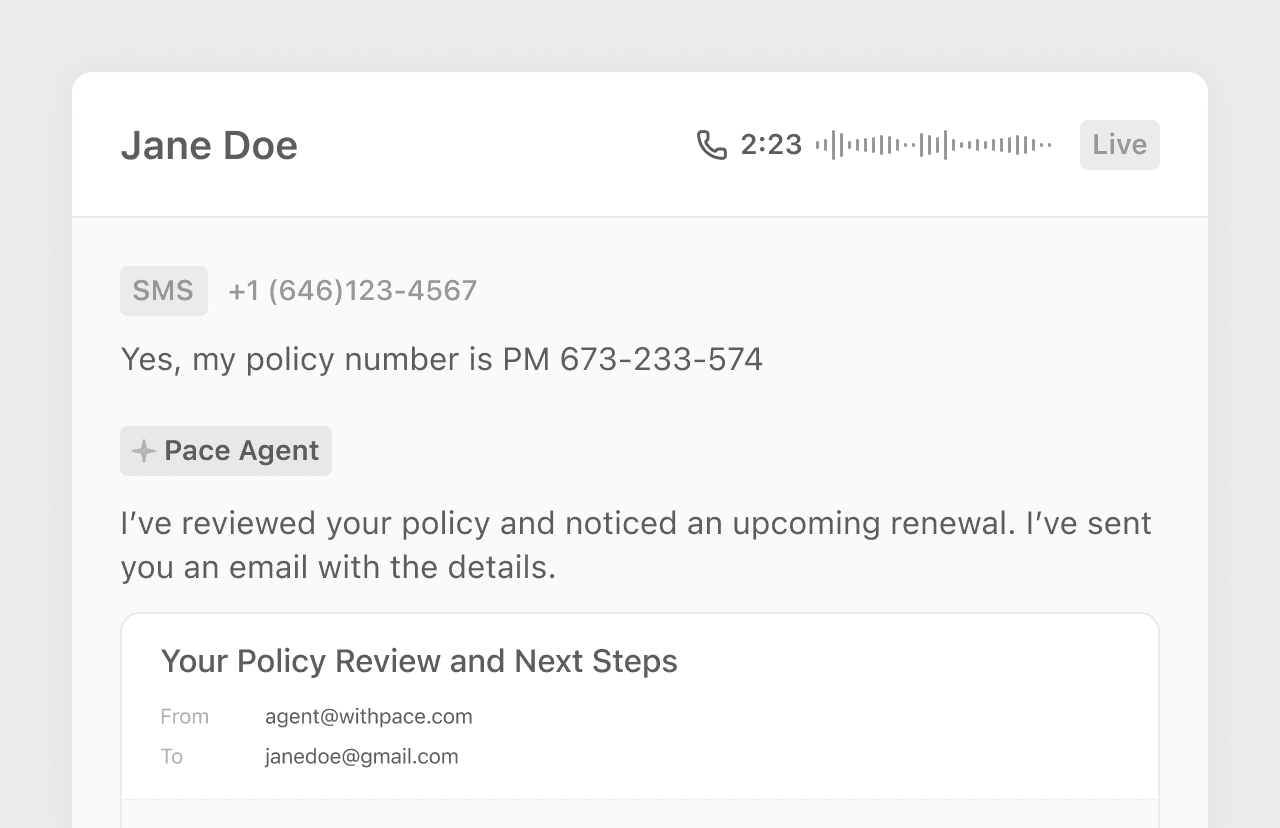 Pace agents can communicate across all the channels your customers and partners use.